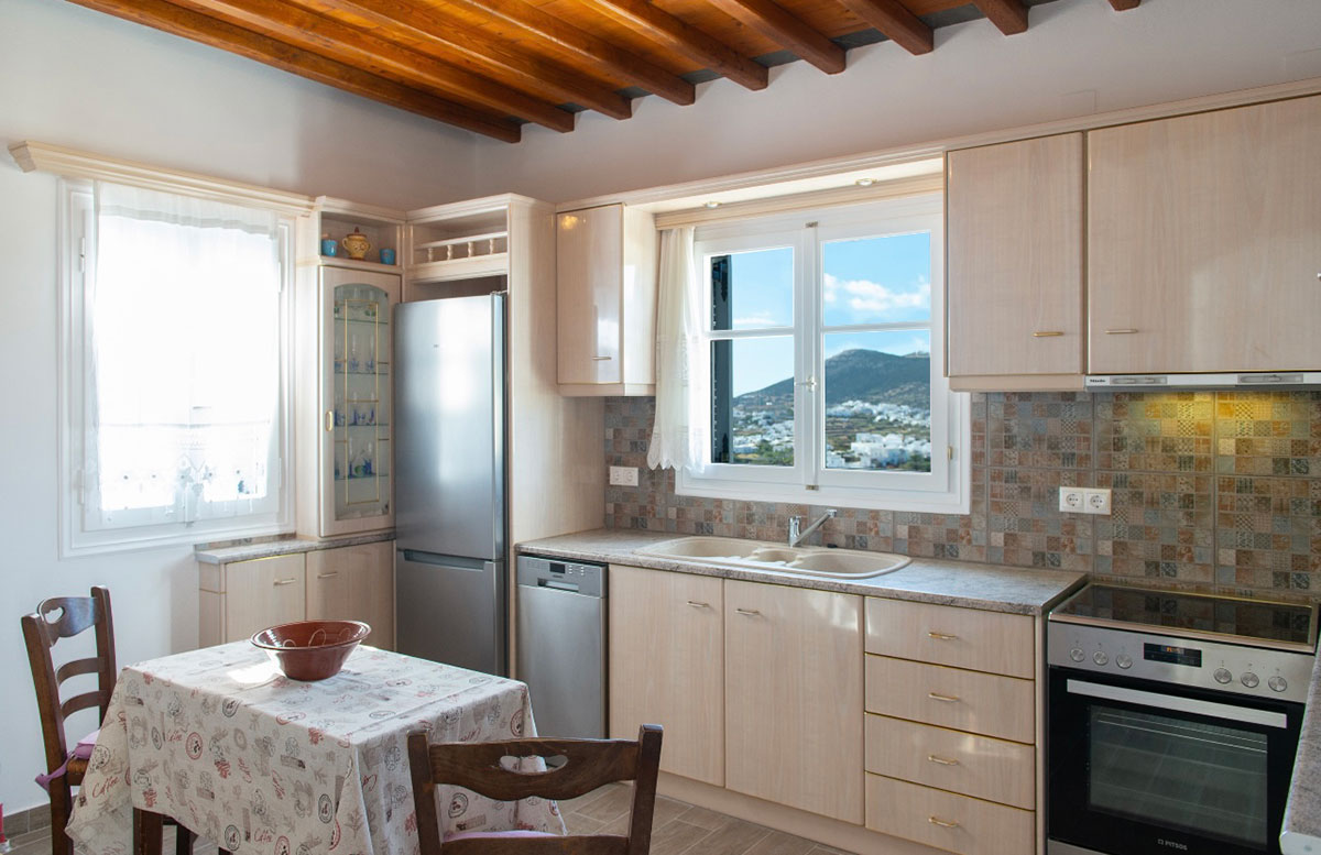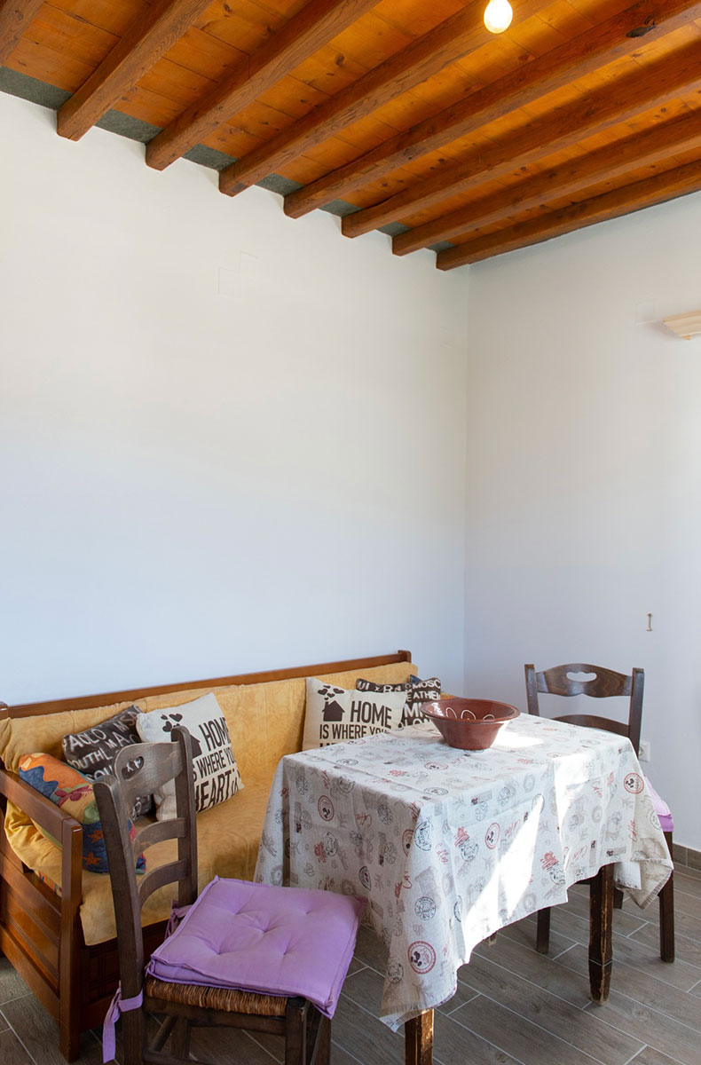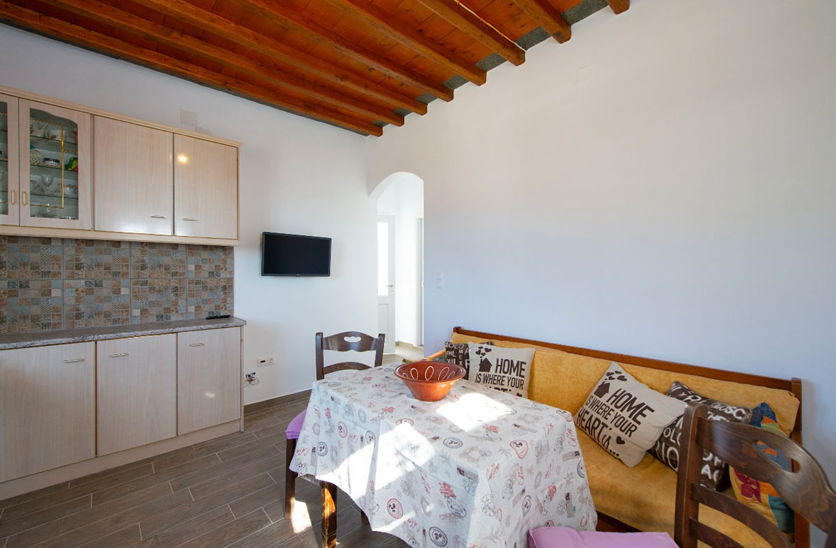 Διαθέτει ένα υπνοδωμάτιο και ενιαίο χώρο με πλήρως εξοπλισμένη κουζίνα και καθιστικό με καναπέ. Το μπάνιο είναι ευρύχωρο με ρετρό διακόσμηση ενώ υπάρχει και ένας μικρός χώρος με το πλυντήριο των ρούχων. Στην αυλή μπορείτε να απολαύσετε τις ευωδιές από τα λουλούδια του κήπου και τη θέα προς τους γύρω οικισμούς της Σίφνου.